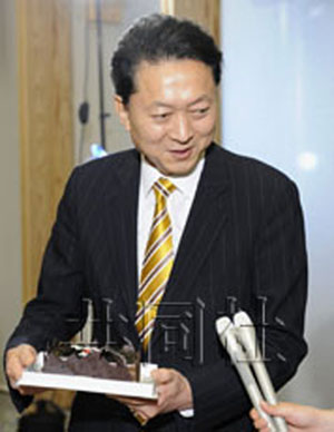 鳩山笑容滿面地說(shuō):“對(duì)能收到這樣甜蜜的禮物表示感謝!被仡欉^(guò)去的一年,他又苦笑著說(shuō):“雖然自己盡心盡力了,但得不到國(guó)民理解的時(shí)候只能承受痛苦!