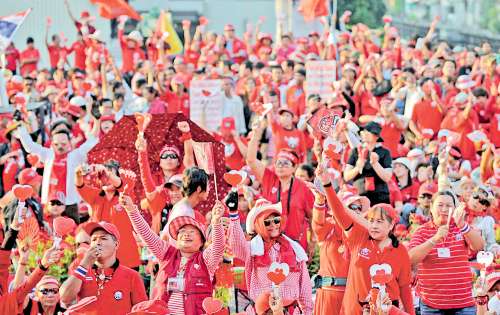 據(jù)悉,泰國(guó)紅衫軍今天已在曼谷聚集超過(guò)10萬(wàn)人。核心領(lǐng)袖納塔兀(Natthawut Saikua)指出,即使政府宣布緊急狀態(tài)也不能制止支持者示威。