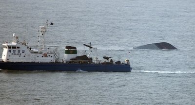 韓國(guó)海軍和海警消息人士表示,在攝氏8至10度的水溫中,落水者通?梢源婊3個(gè)小時(shí),其后便兇多吉少,為了搶救更多人命,海軍正徹夜全力搜索。