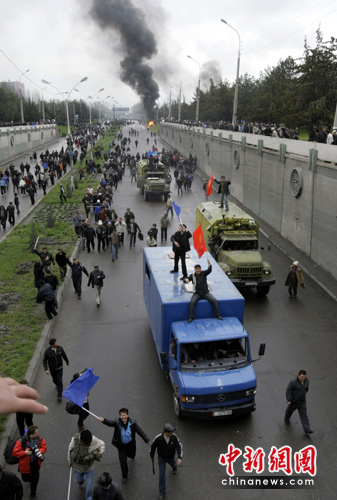 中新網(wǎng)4月8日電 當(dāng)?shù)貢r(shí)間4月6日開始,數(shù)千名吉爾吉斯斯坦反對(duì)派示威者在首都比什凱克市中心集會(huì)游行,并與防暴警察發(fā)生沖突,逐漸演變成騷亂,造成數(shù)百人傷亡。反對(duì)派扣押政府高官,占領(lǐng)部分政府機(jī)構(gòu)以及國(guó)家電視臺(tái),并稱最終目的是要總統(tǒng)下臺(tái),奪取國(guó)家政權(quán)。吉總統(tǒng)巴基耶夫下令全國(guó)進(jìn)入緊急狀態(tài),并宣布實(shí)行宵禁。