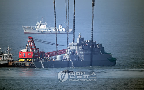 韓國軍方有關(guān)人士表示:“沉重的門鈕和煙筒能被損毀丟失,表示當時受到了強力沖擊。”“可以將門鈕損毀的沖擊,一般可以對乘務(wù)官兵造成昏厥!
