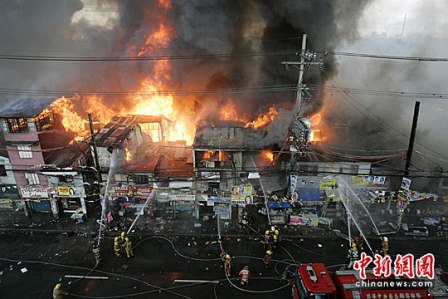 中新網(wǎng)4月26日電 據(jù)臺灣“中廣新聞網(wǎng)”報道,菲律賓首都馬尼拉郊區(qū)奎松市的一座貧民窟25日下午慘遭火災肆虐,大火一發(fā)不可收拾,數(shù)百棟房屋付之一炬,上萬人無家可歸。