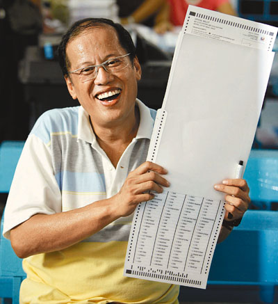 中新網(wǎng)5月11日電 據(jù)香港《文匯報》報道,菲律賓10日大選,選舉委員會表示,在已點算的57%選票中,已故前總統(tǒng)阿基諾夫人的兒子阿基諾三世取得40.58%選票,其勁敵73歲前總統(tǒng)埃斯特拉達只得25.72%。阿基諾三世有望繼亡母后,成為家族中第2名總統(tǒng),他承諾當選后致力打擊腐敗和消除貧困。