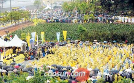 據(jù)報(bào)道,當(dāng)天,在舉行盧武鉉逝世一周年追悼儀式的峰下村,大雨如注,然而前來追悼的客人仍然絡(luò)繹不絕。