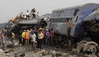 印度鐵道部長馬馬塔-班納吉稍早時說,列車可能是由于遭到炸彈襲擊而脫軌。而在被問及是否會對鐵路實施警戒時,班納吉說:“印度共有6.5萬公里的鐵路線,其中多通過鄉(xiāng)村地區(qū)!卑凳静淮罂赡軐λ需F路線保持警備。