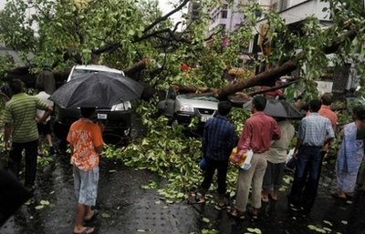 熱帶風(fēng)暴襲擊了孟加拉邦人口密集的首府加爾各答,造成樹(shù)木折斷、斷電,許多車輛被毀。
