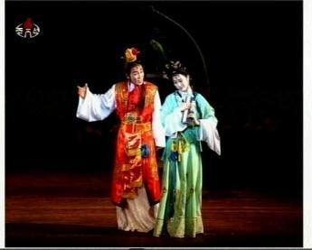在眾多演出中,最具特色的當(dāng)數(shù)中國(guó)的京劇表演,這是京劇首次登上“四月之春”藝術(shù)節(jié)的舞臺(tái)。因?yàn)閾?dān)心外國(guó)觀眾難以理解,演出劇目全部是《龍宮借寶》、《汗津口》、《天女散花》、《拾玉鐲》之類的武戲。劇團(tuán)的這一設(shè)計(jì)也收到了良好的效果,孫悟空飛舞的金箍棒、關(guān)羽于禁的廝殺都迎來(lái)朝鮮觀眾的陣陣掌聲!妒坝耔C》對(duì)白不多,也沒有精彩的武打場(chǎng)面,但顯然演員的一舉一動(dòng)都為觀眾所理解,女兒家那點(diǎn)害羞、猶豫和欣喜演繹得恰到好處,不時(shí)引來(lái)臺(tái)下會(huì)心的輕笑。這也讓人感覺到中朝兩國(guó)不僅地理相鄰,而且文化相通,東方的幽默和思維讓兩國(guó)的藝術(shù)能夠走得更近。當(dāng)然,畢竟是異國(guó)文化,在一個(gè)多小時(shí)的演出里不可能了解京劇的全部。演出結(jié)束后,一位朝鮮觀眾興奮地稱贊京劇真是太精彩了,然后好奇的問,演員們是不是都是搞雜技出身的?