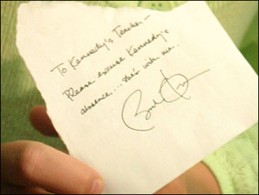 美國媒體爭相報道了這一事件,而10歲的小女孩也成為了明星?夏岬媳硎緭(dān)心老師將請假條“據(jù)為己有”,所以只給他一份復(fù)印件。
