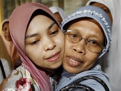 星期一(8月24日),司法當(dāng)局用汽車把蘇卡諾從家中接到一個(gè)拘押地點(diǎn),以便在本星期對(duì)她執(zhí)行鞭刑。
