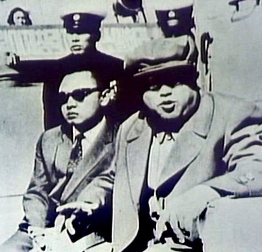 中新網(wǎng)8月28日電 據(jù)韓國《中央日報(bào)》28日報(bào)道,朝鮮中央電視臺25日播放了講述朝鮮國防委員長金正日生平的紀(jì)錄片《照耀世界的先軍太陽》第一部。圖片顯示,金委員長在金日成綜合大學(xué)念大二時(shí)的1961年,他陪伴金日成主席(1994年去世)前往大德山軍隊(duì)進(jìn)行現(xiàn)場指導(dǎo),坐在旁邊的位置上。這是金日成父子首次一起進(jìn)行現(xiàn)場指導(dǎo)的場面。