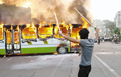 他說示威隊(duì)伍約1000人,后來大批駕駛電單車的軍警人員逼近,毆打他們,人群四散躲避之際,民兵卻帶著棍棒在小巷里埋伏。示威者霎時(shí)間無路可退,幸得巷里人家開門營救。當(dāng)示威者遠(yuǎn)離警察和民兵后,便高呼“伊朗已變成巴勒斯坦”等口號(hào),駛經(jīng)的汽車都響號(hào),公共汽車乘客揮手支持。