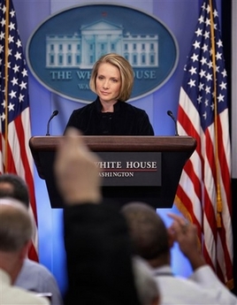 佩里諾與記者的問(wèn)答發(fā)生在10月26日的白宮新聞簡(jiǎn)報(bào)會(huì)上,記者問(wèn)她:“俄羅斯總統(tǒng)普京說(shuō),美國(guó)在東歐建立導(dǎo)彈防御網(wǎng)就好像蘇聯(lián)在古巴部署導(dǎo)彈一樣,會(huì)成為另一個(gè)古巴導(dǎo)彈危機(jī),你做何評(píng)論?”佩里諾回答:“我想拿那段歷史作比較不見(jiàn)得完全正確!