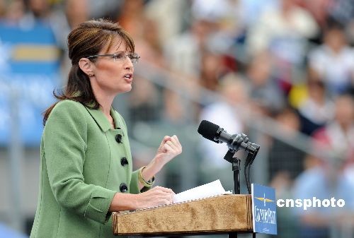 佩林9月3日晚在美國(guó)共和黨全國(guó)代表大會(huì)上首次亮相。在講臺(tái)上,佩林四十多分鐘剛?cè)岵?jì)的演說(shuō)大大調(diào)動(dòng)了共和黨代表的熱情。