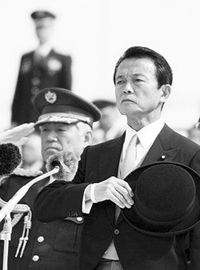 10月19日,日本首相麻生太郎在航空自衛(wèi)隊(duì)位于茨城縣的百里基地檢閱部隊(duì)