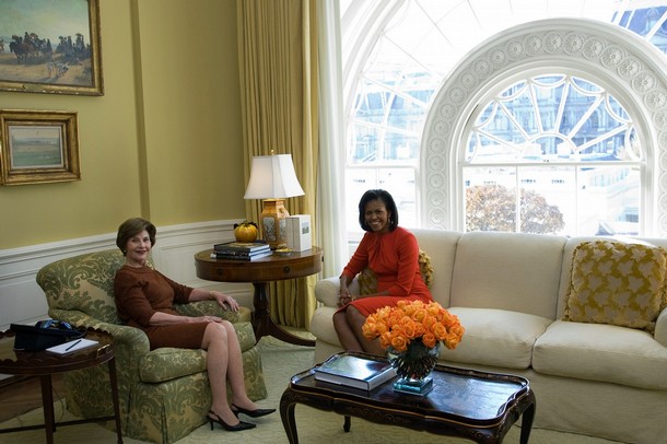 據(jù)美聯(lián)社2008年11月11報道,當(dāng)?shù)貢r間11月10日,美國當(dāng)選總統(tǒng)奧巴馬在白宮之行中已經(jīng)顯示出主人風(fēng)范,好像是在邀請布什參觀“自己”的辦公室。未來的第一夫人米歇爾顯然更關(guān)心自己孩子的教育問題,在白宮短暫停留后,米歇爾立刻動身前往華盛頓的幾所名校參觀,為孩子們擇校。