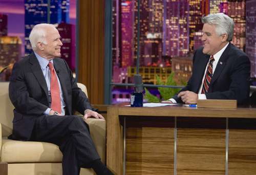 麥凱恩十一日在全國廣播公司的《今夜秀》(Tonight Show)中接受主持人積連奴訪問。他看來精神不錯,而且能夠泰然地拿敗選一事來開點玩笑。他說自己在敗選后一直“睡得像個嬰兒般:睡兩個鐘頭,然后起床哭一下,然后又睡兩個鐘頭!丙渼P恩稱,他所住的亞利桑那州現(xiàn)在已出了四名在大選中落敗的總統(tǒng)候選人,因此該州“可能是美國唯一一個母親們不會告訴子女他們有朝一日可以當上總統(tǒng)的州分了!彼终f,大選翌日他和妻子辛迪做的第一件事是出門買咖啡,而“不是買報紙”。
