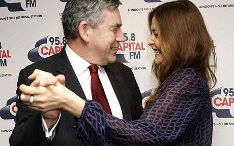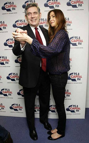 英國首相戈登·布朗11日出席倫敦一家廣播電臺的開業(yè)大典,與被稱為“英國保養(yǎng)最好的模特”的麗莎·史諾頓共舞。風度翩翩的首相立刻迷倒一大片女性觀眾。
