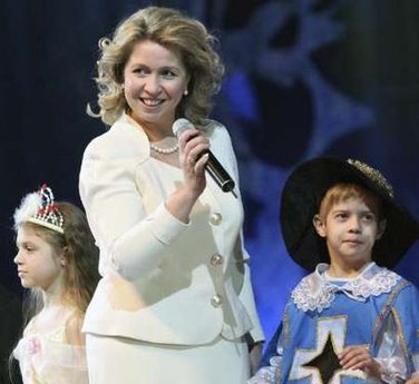 中新網(wǎng)12月30日電 據(jù)星島環(huán)球網(wǎng)報(bào)道,俄羅斯第一夫人斯維特拉娜-梅德韋杰夫日前出席了在克里姆林宮舉行的新年晚會(huì),與孩子們?cè)谝黄鸬乃@得光彩照人。遠(yuǎn)離政治的斯維特拉娜在時(shí)尚界頗有名氣,還熱心公益。