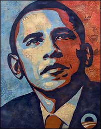 費爾雷創(chuàng)作的奧巴馬肖像與以往總統(tǒng)侯選人的競選海報風(fēng)格大不相同,最初曾以“希望”命名,后來,改稱“變革和投票”。