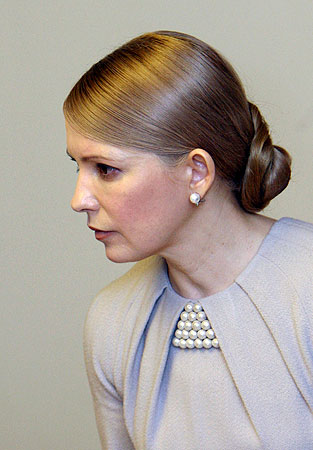 據(jù)俄羅斯《觀點報》報道,5月6日上午烏克蘭女總理季莫申科以嶄新的形象出現(xiàn)在政府會議上,特別引人注目的是她舍棄了全國乃至全世界民眾都已習(xí)以為常的標(biāo)志性革命發(fā)辮,把此前盤繞在頭頂?shù)霓p子解開,挽成發(fā)髻整齊地盤在腦后。