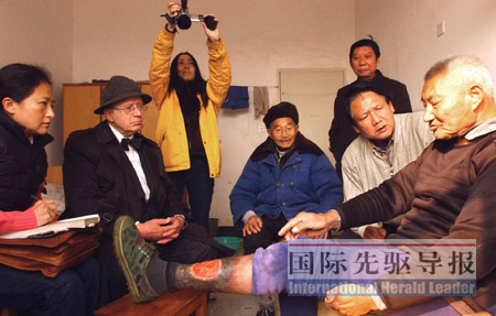 12月4日下午3點(diǎn),在浙江省金華市婺城區(qū)湯溪鎮(zhèn)的一戶村民家里,這位來自美國加州大學(xué)舊金山分校皮膚病學(xué)臨床教授正在給眼前的這位中國細(xì)菌戰(zhàn)受害者會診。