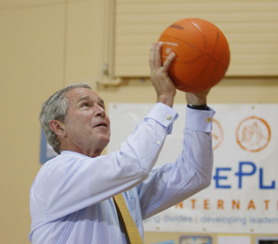 美國總統(tǒng)布什很早就預(yù)訂下了中美籃球賽的門票。