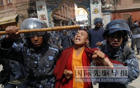 次仁們算是幸運(yùn)的!秶H先驅(qū)導(dǎo)報(bào)》記者在現(xiàn)場看到,被煽動(dòng)沖在前面和尼泊爾警方對峙、沖突的多是青少年,而那些“藏獨(dú)”骨干則在現(xiàn)場附近拿著手機(jī)指揮、清點(diǎn)人頭。