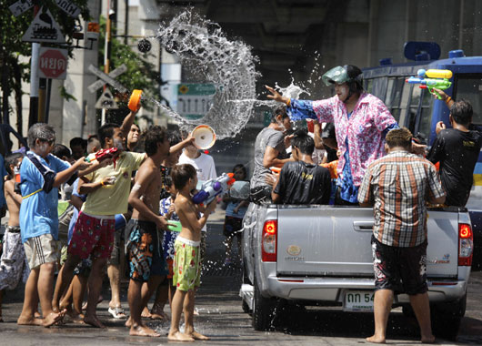國際先驅(qū)導(dǎo)報(bào)記者沈敏 特約撰稿蔣曉峰發(fā)自曼谷 今年的宋干節(jié)(潑水節(jié))有了個(gè)“黑色”,至少是“灰色”的開始,但一天過后,泰國人的節(jié)日情緒又開始高調(diào)起來。