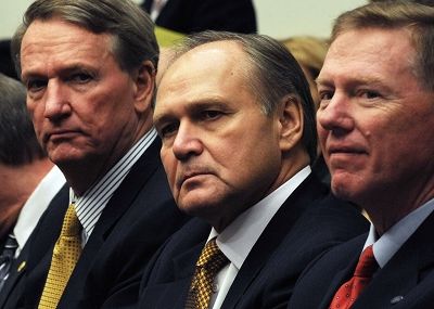 通用CEO瓦格納(左)、克萊斯勒CEO納德利(中)、福特CEO穆拉利