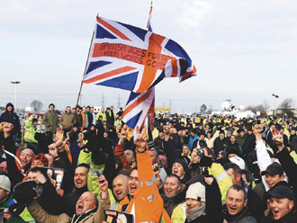 英國(guó)東部林肯郡一座煉油廠上月發(fā)生反外勞罷工,后來(lái)波及20處其它油氣設(shè)施,最后廠方同意198個(gè)職位中的一半聘用英國(guó)勞工,騷亂才結(jié)束,這次罷工為歐洲企業(yè)主敲起警鐘,暗示將來(lái)會(huì)有更多激烈糾紛。