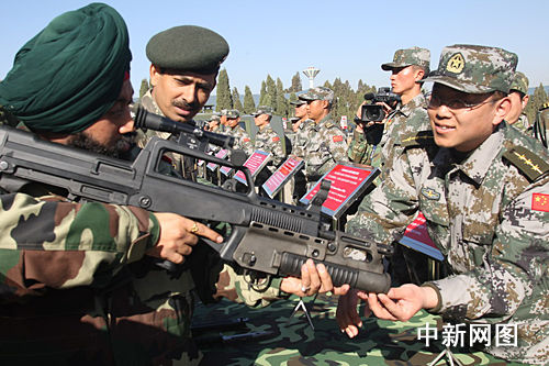 與此同時,兩國軍隊之間也在不斷地進(jìn)行實質(zhì)性的交流。海上,二00三年和二00五年,兩國海軍分別在上海附近的東海海域和印度洋北部海域舉行聯(lián)合搜救演習(xí);陸上,致力于建立和平、友好、安寧的邊界,兩國邊防部隊之間經(jīng)常文體聯(lián)誼及會晤會談。二00四年,兩國軍隊在西藏地區(qū)舉行聯(lián)合登山活動。兩國還互派觀摩團觀摩對方的軍事演習(xí),如印度曾邀請中國軍人觀摩他們的“沙漠打擊”演習(xí),而中國軍隊則邀請印度軍人觀摩了四次演習(xí)。另外,在人員培訓(xùn)、院校交流方面,也都取得了突破性進(jìn)展。