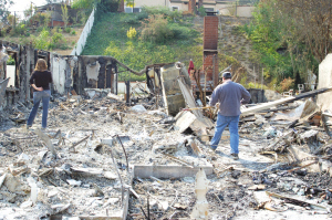 圣地牙哥紅十字會(huì)的發(fā)言人福肯壽(Gayle Falkenthal)也是受害者之一。她駕著她的1991年豐田轎車從斯克瑞普斯農(nóng)莊的家中逃出來(lái),車上裝滿了貴重的個(gè)人物品。她在圣地牙哥的一位朋友家借住一宿,早晨醒來(lái)卻發(fā)現(xiàn)她停在外面的車已被洗劫一空。