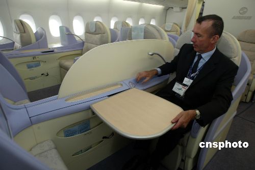 10月26日,參觀空中客車A380飛機(jī)的北京民眾被其豪華舒適的客艙所吸引。當(dāng)日,一架生產(chǎn)編號(hào)為007的空中客車A380客機(jī)停靠在北京首都國際機(jī)場(chǎng)N104機(jī)位,接待北京媒體及部分嘉賓的參觀。此次A380中國大陸之行為期一周,包括廣州、上海及北京三個(gè)城市,這是A380飛機(jī)2007年環(huán)球飛行之旅的重要部分。中新社發(fā) 楊影懿 攝
