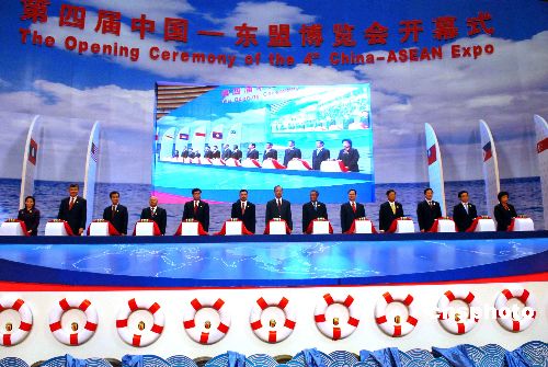 十月二十八日上午,第四屆中國-東盟博覽會在廣西南寧國際會展中心開幕。中國國務院副總理曾培炎、柬埔寨首相洪森、老撾總理波松、越南總理阮晉勇、文萊王儲穆赫塔迪•比拉等五國領(lǐng)導人出席博覽會開幕式。