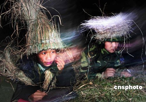 到達集結地域后,參演官兵迅速對武器裝備進行隱蔽偽裝。