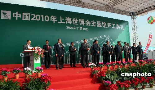 十一月十日,中國2010年上海世博會永久性場館——世博會主題館正式開工建設。此舉標志著上海世博會永久性場館建設進入全面推進階段。這一主題館地上建筑面積為八萬平方米,地下建筑面積為四萬平方米,建設周期約為兩年。主題館項目位于上海世博會規(guī)劃圍欄區(qū)浦東區(qū)域、“世博軸”西側,毗鄰規(guī)劃中的磁懸浮世博園站。中新社發(fā) 許曉青 攝