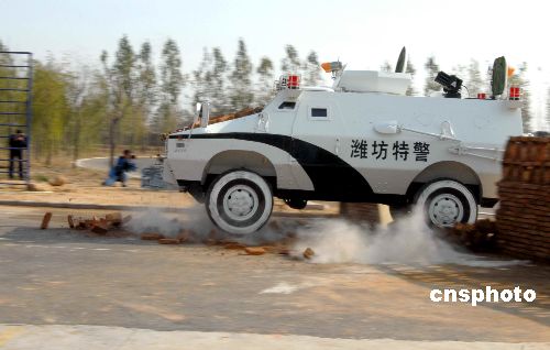 11月12日,山東濰坊公安機(jī)關(guān)苦練基本功暨反恐演練匯報表演在該市警官培訓(xùn)基地舉行,內(nèi)容包括隊列分列式表演、警務(wù)各項技能表演、多警種聯(lián)合反恐作戰(zhàn)演練等三項內(nèi)容。中新社發(fā) 田源 攝