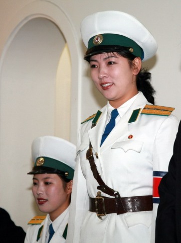 女交警是平壤一道亮麗的風(fēng)景線,她們都是亭亭玉立、正值妙齡的未婚女青年,年齡從16歲到26歲不等,體貌端正、聰穎健康,身高不低于1.65米,是在眾多高中畢業(yè)生中精心挑選出來的優(yōu)秀人才。她們站在十字路口中央,手拿交通指揮棒,眼睛注視著川流往來的車輛,迅速敏捷地指揮著交通,著實一幅巾幗不讓須眉的颯爽英姿,不禁令人眼前一亮!