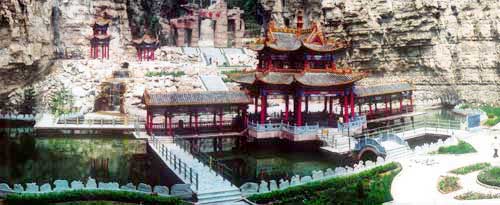 接引橋:走出洞口,出現(xiàn)在我們面前的便是在當(dāng)年介之推母子看到過的虹橋橋基上建造的渡橋。過橋向右便可進(jìn)入道家仙境——柏樹嶺、介公祠;向左就是佛教禪林——巖溝說法臺。為此,不同信仰的人們又分別叫它接引橋、仙徑橋。