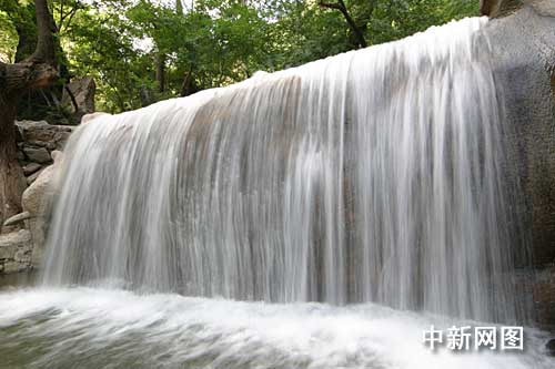天源瀑布:介公背負(fù)介母至此,已是汗流頰背,精疲力竭。舉目仰望,天步艱難。數(shù)月風(fēng)塵,子推衣灰體垢,介母看著不覺心痛。此時(shí),忽聽山壁上似有泉水之聲,定睛望去,一股飛流傾泄而下,云霧之中又見文殊天尊于泉水涌出處拂塵一揮,隱入幽谷之中。子推母子望谷而拜,于瀑下洗滌,塵慮頓消。
