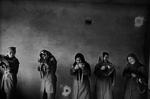 在阿富汗學(xué)習(xí)射擊的婦女。她們將被培訓(xùn)成為女警察。