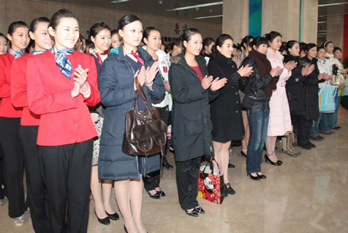 北京奧運(yùn)頒獎禮儀志愿者"受審" 美女秀微笑(圖)