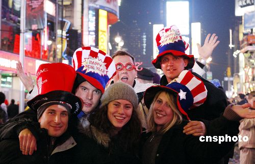 來自世界各地的游客在紐約時代廣場迎接新年到來。中新社發(fā) 鄧悅 攝