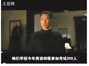 于是,惡搞版《色,戒》出爐了:易先生變成梁校長,收到副官的“四級考試有人作弊”報(bào)告后,下令補(bǔ)考否則不能畢業(yè),而王力宏及一幫掙扎在四級苦海中的學(xué)生毅然決定派王佳芝作弊,找個補(bǔ)考老師(庹宗華),實(shí)行“一人吃飽,全家不餓”的作弊方式,但校方道高一丈,派出“無間道”班底的監(jiān)聽員,最終一網(wǎng)打盡,王佳芝與鄺裕民被處以開除學(xué)籍的處分。