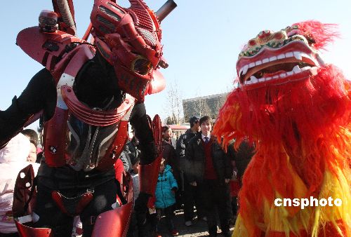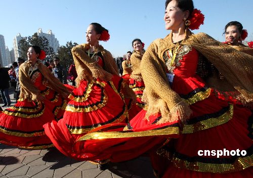2月9日,在北京舉行的“2008北京朝陽(yáng)國(guó)際風(fēng)情節(jié)”上,來(lái)自英國(guó)、斯洛文尼亞、西班牙、美國(guó)、瑞典、俄羅斯、烏拉圭等10個(gè)國(guó)家的多支表演藝術(shù)團(tuán)隊(duì)、180多位中外藝術(shù)家在多個(gè)舞臺(tái)進(jìn)行不同場(chǎng)次的精彩表演。中新社發(fā) 錢(qián)興強(qiáng) 攝