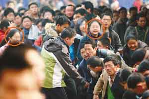 鐵柵欄外那個人就是“帶頭大哥”或者“帶頭大姐”,負(fù)責(zé)發(fā)指令給同伙的票販。一旦有人插隊,站在隊伍中的票販會先問對方是誰介紹來的,然后再向“帶頭大哥”求證。如果是“自己人”,他們就讓對方插進(jìn)來;如果不是,“帶頭大哥”或者“帶頭大姐”就會前來維持秩序,把插隊的人強拉出去!皫ь^大哥”、“帶頭大姐”還負(fù)責(zé)給同伙提供伙食。