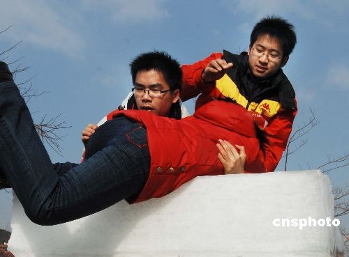 模擬人掉進(jìn)冰窟,開(kāi)展施救