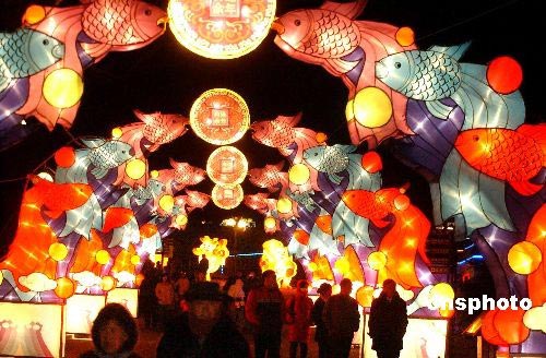 2008沈陽迎春燈會(huì)在沈陽世博園舉行,本屆燈會(huì)展出北京奧運(yùn)、鼠年吉祥、世界遺產(chǎn)、京劇臉譜、童話王國(guó)、沈陽地標(biāo)、傳統(tǒng)花燈、書法藝術(shù)八大主題系列,展線長(zhǎng)3400米,花燈數(shù)量超過3000盞,花燈品類達(dá)到80多個(gè),其中以“北京奧運(yùn)”為主題的組燈受到市民的“追捧”。中新社發(fā) 羅瀾 攝