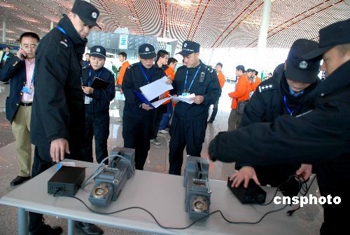 2月23日,北京首都機場T3航站樓順利完成了啟動前的最后一次綜合演練。北航、聯(lián)大、物資等高校的大學(xué)生志愿者和機場工作人員參加了此次演練。此次演練內(nèi)容主要測試的是T3航站樓正常的進(jìn)、出港旅客流程,中轉(zhuǎn)旅客流程,國際航班國內(nèi)段,涉及違禁品、危險品等問題行李的處置及要客警衛(wèi)保障工作測試。中新社發(fā) 楊慧峰 攝