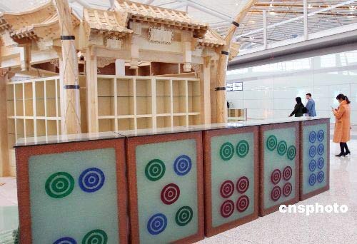 圖為3號航站樓內(nèi)新設(shè)的“麻將”景觀。